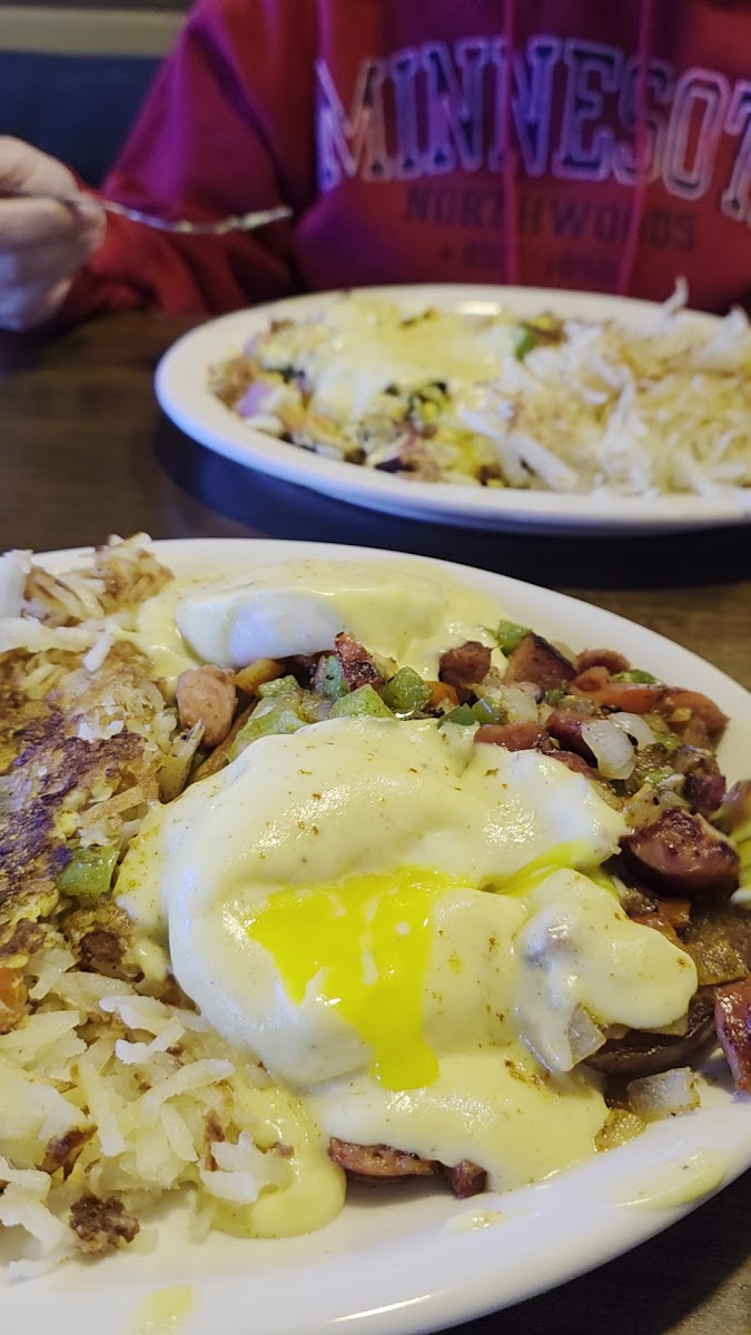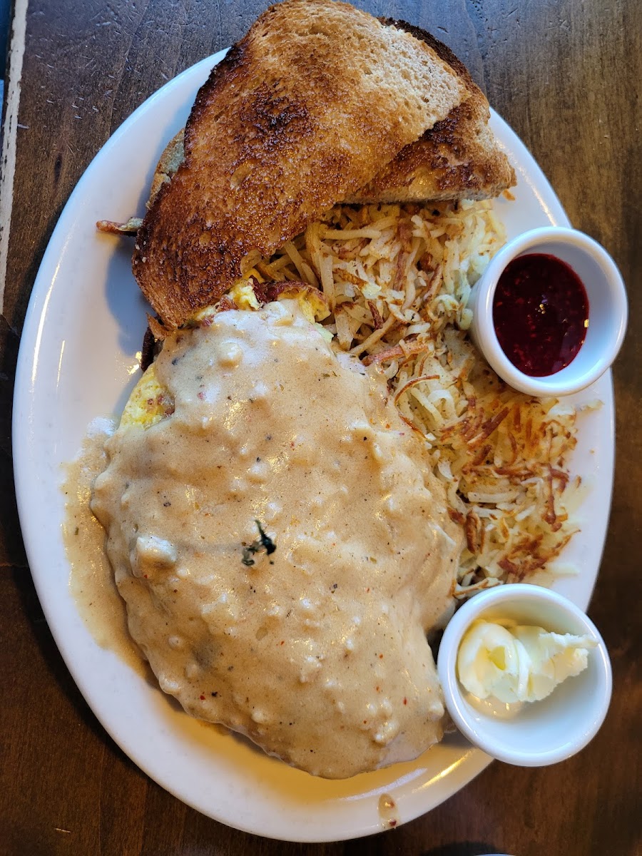 We went on a Saturday morning and it was pretty busy. We had a table of 4 and it took a while to get our food, maybe 45 minutes. The omelette was great, wasn’t sure how the gravy on an omelette would be and it was actually super good! Super solid breakfast place.
