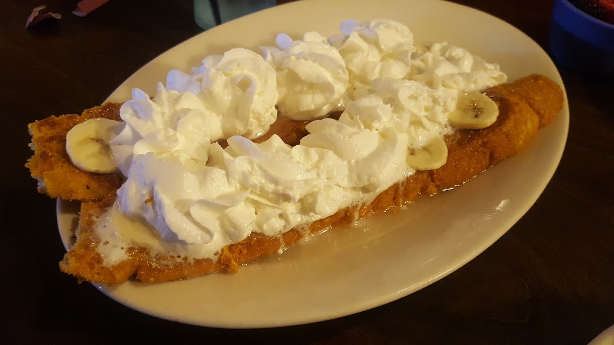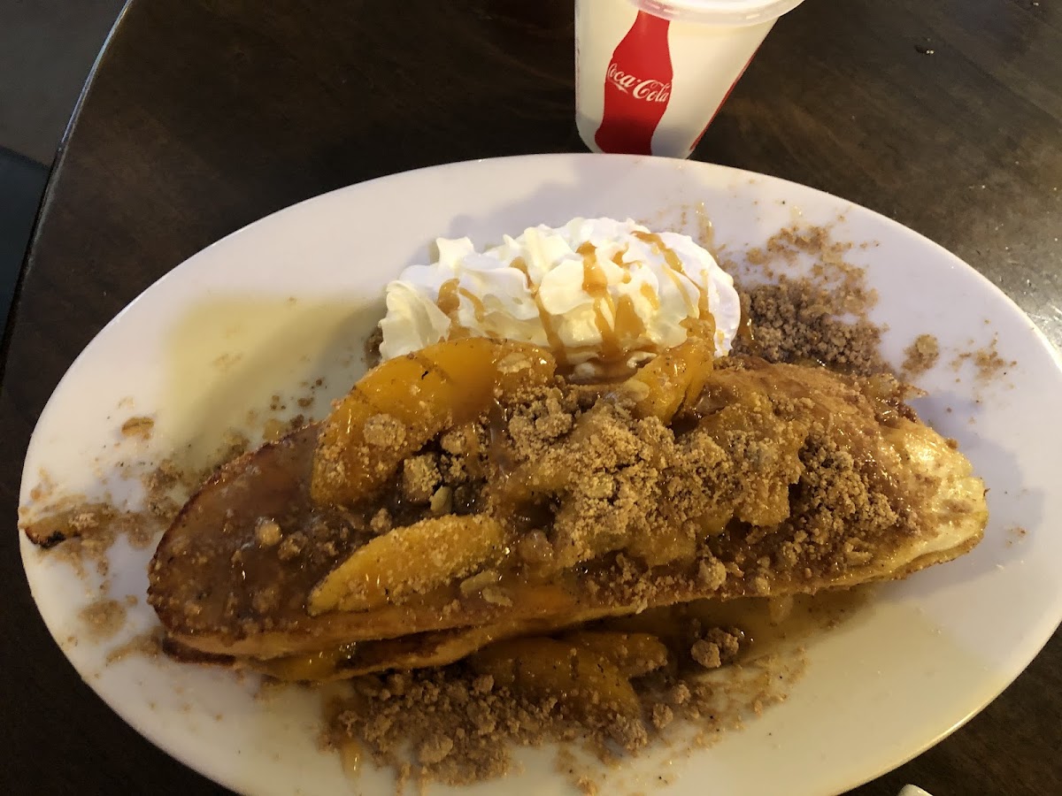 If this wasn’t the best peach cobbler French toast, I wouldn’t be back. The service wasn’t the greatest — we waited quite a while to be seated, which was understandable since they were busy. After we ordered, it took some time for our food to come out, and one of our party’s orders was missed entirely, so he had to change to something simpler just to eat with us. That said, the food itself was worth the wait. Portions were large, everything tasted great, and this French toast was absolutely delicious — crispy on the outside, soft on the inside, and topped perfectly with whipped cream, crumble, and caramel drizzle. Overall, the service could’ve been better, but the food definitely made up for it.